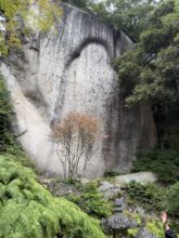 「弥勒磨崖仏」は笠置寺の御本尊で、高さ 15 mの壁面には、弥勒菩薩立像が刻まれていました。弥勒菩薩は、お釈迦さまの滅後、56億7千万年の未来にこの世に現れ、仏教を再興する仏といわれています。この仏は「天人の作」といわれ 664年の作と伝えられています。