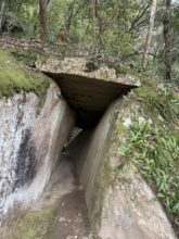 「胎内くぐり」笠置山の入り口にあり、修行を行う前は滝で身を清めますが、笠置山には滝がないためこの岩をくぐりぬけ、身を清めたとされています。